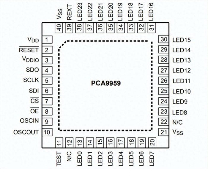 NXP恩智浦PCA9959 LED照明驅動程序采用緊湊的5.0mm x 5.0mm x 0.85mm HVQFN40封裝,具有-40°C到+85°C的工作溫度范圍。