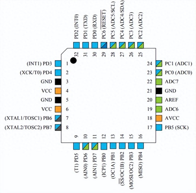 數字和模擬I/O: 芯片具備數字輸入/輸出引腳和模擬輸入引腳,可以與傳感器、執行器等設備進行連接。