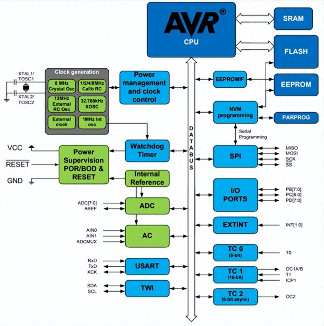 AVR?核心結合了豐富的指令集和32個通用工作寄存器。所有32個寄存器都直接連接到算術邏輯單元(ALU),允許在一個時鐘周期內執行的一條指令中訪問兩個獨立的寄存器。由此產生的體系結構是更多的高效代碼,同時實現比傳統CISC微控制器快十倍的吞吐量。