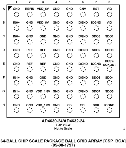 AD4630-24/AD4632-24采用64引腳芯片級球柵陣列(CSP_BGA)封裝,集成了所有關(guān)鍵電源和基準(zhǔn)電壓旁路電容,縮小了尺寸,減少了系統(tǒng)元件數(shù),同時(shí)降低了對電路板布局的敏感性。