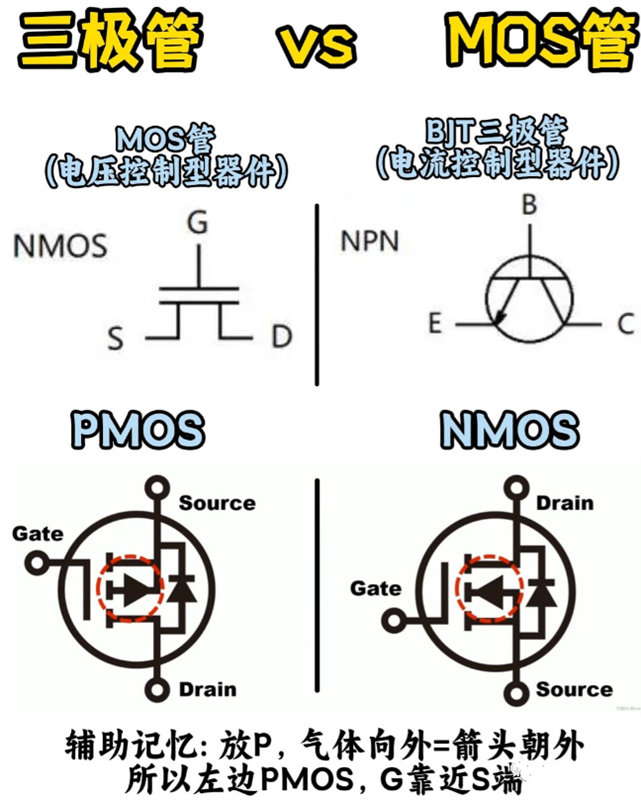 PMOS管接在電源的正極,柵極低電平導(dǎo)通。