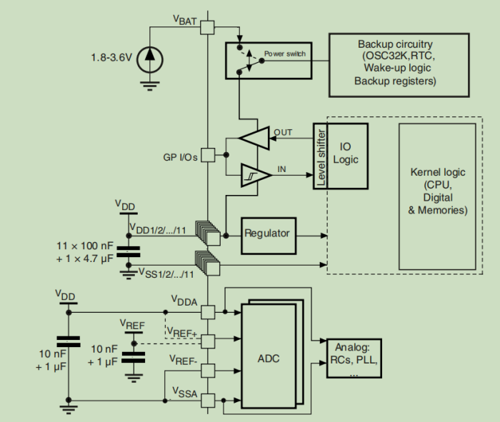 STM32供電方案【ADC供電、VDDA、VSSA、VREF、VBAT等】