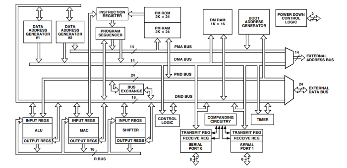 此外,ADMC401BST器件通過利用DSP內(nèi)核的完整地址和數(shù)據(jù)總線,還增加了重要的外部存儲器和外設(shè)擴展能力。此功能允許擴展外部程序和數(shù)據(jù)存儲器,且意味著DSP內(nèi)核可以尋址高達(dá)14K × 24位的外部程序存儲器和高達(dá)13K × 16位的外部數(shù)據(jù)存儲器。