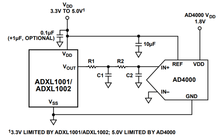 ADXL1001/ADXL1002 在具有兩個滿度范圍選項的拓展頻率范圍內提供超低的噪聲密度,并且提供優化的工業條件監測能力。ADXL1001 (±100 g) 和 ADXL1002 (±50 g) 分別具有 30 μg/√Hz 和 25 μg/√Hz 的典型噪聲密度。兩款加速度計器件均具有穩定、可重復的靈敏度,并且可以承受高達 10,000 g的外部沖擊。
