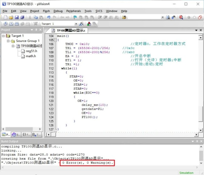運用所學單片機知識,完成溫度信號的測量。要求如下:單片機系統選擇使用AT89C51,通過熱敏電阻PT100檢測溫度并使用AD轉換獲取溫度值(不允許使用DS18B20等傳感器),在數碼管上顯示溫度值。