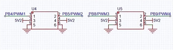 2.主控輸出4路PWM信號(周期20us,頻率50Hz),可直接驅(qū)動4路舵機。