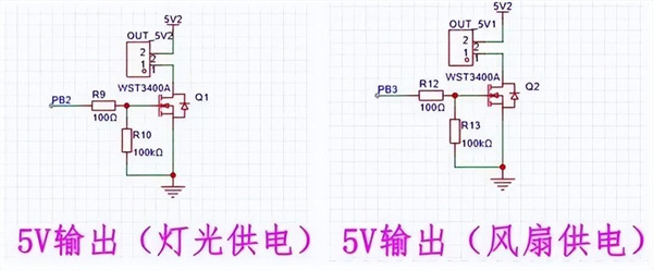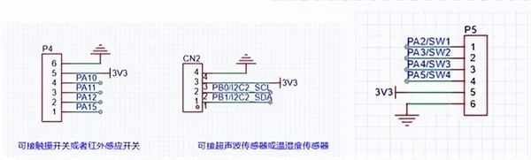 5.電路設(shè)計了2路MOS驅(qū)動電路,可外接5V的小風(fēng)扇和5V供電的燈。另外預(yù)留了2種屏幕接口,支持8針的SPI接口的屏幕或者4針的I2C接口的屏幕。預(yù)留3組擴展接口,將剩余的IO口全部引出,方便擴展。
