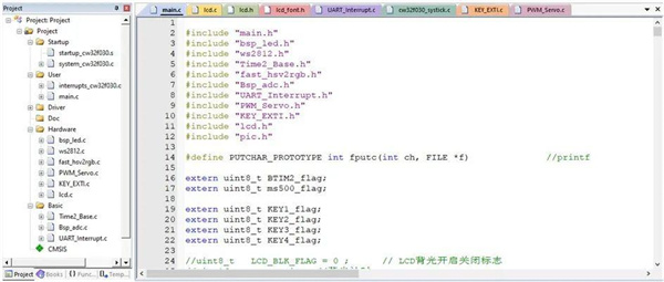 1.CW32F030C8T6的程序開發(fā)。采用Keil5開發(fā),借鑒了CW32官方例程和開源平臺上一些大佬的程序。程序中涉及GPIO、DMA、定時器、ADC、UART、PWM、SPI等功能的實現(xiàn)。