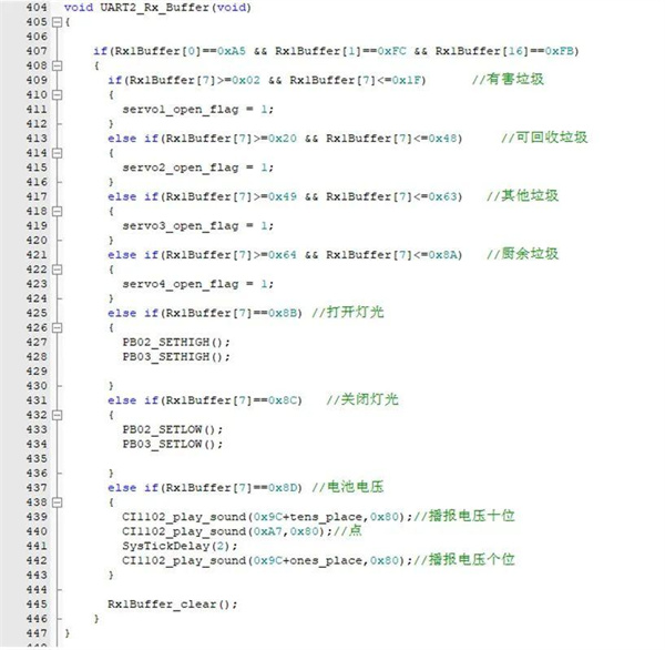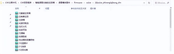 1.離線語音模塊的命令詞可自行定制,最多可錄入200個命令詞,目前已錄入了168條垃圾名詞和一些控制指令。當(dāng)語音模塊識別到正確的命令詞后,串口輸出規(guī)定協(xié)議的數(shù)據(jù)。語音模塊也可以接收規(guī)定協(xié)議的串口數(shù)據(jù)來播報指定的語音。離線語音模塊的串口1和MCU主控的串口2使用跳線連接,方便分別開發(fā)調(diào)試。