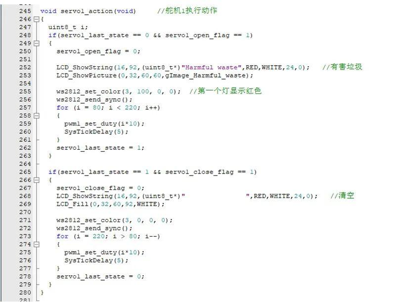 采用定時器和標(biāo)志位,使舵機緩慢打開,一定時間后緩慢自動關(guān)閉,4路舵機相互不受影響。