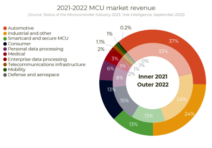 總結(jié)而言,2023 年,汽車行業(yè)將繼續(xù)成為 MCU 收入的重要推動(dòng)力,從而帶動(dòng)整體 ASP 的增長(zhǎng)。與此同時(shí),工業(yè)和其他應(yīng)用將保持穩(wěn)定的份額,而智能卡/安全 MCU 預(yù)計(jì)將在強(qiáng)勁的嵌入式安全趨勢(shì)的推動(dòng)下增長(zhǎng)。然而,消費(fèi)者細(xì)分市場(chǎng)將略有下降,個(gè)人數(shù)據(jù)處理也將減少,這主要是由于設(shè)備更換率有限。此外,MCU市場(chǎng)之前的供應(yīng)鏈挑戰(zhàn)似乎已經(jīng)得到解決。