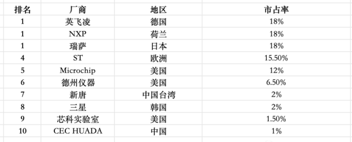 EMEA MCU 供應(yīng)商主導(dǎo)市場(chǎng),但中國(guó)大陸增長(zhǎng)強(qiáng)勁