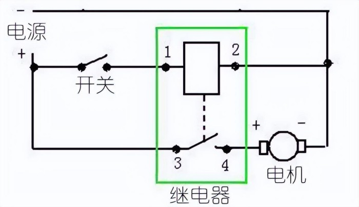 三、汽車繼電器有四腳繼電器和五腳繼電器之分,汽車四腳繼電器先把汽車繼電器的4個引腳找出哪2個是線圈,哪2個是觸點按圖接接就行了。