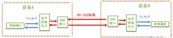 RS-232接口符合美國電子工業聯盟(EIA)制定的串行數據通信的接口標準,它定義了數據的傳輸方式、電氣特性以及物理連接方式。RS-232通信為全雙工通信,傳輸距離短,在總線上只能連接1個收發器。