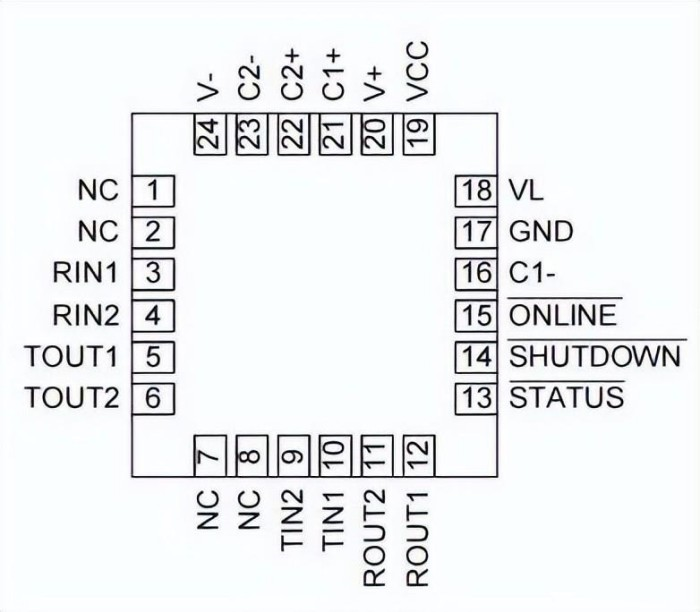 電荷泵需要4個0.1uF外部電容(C1~C4)