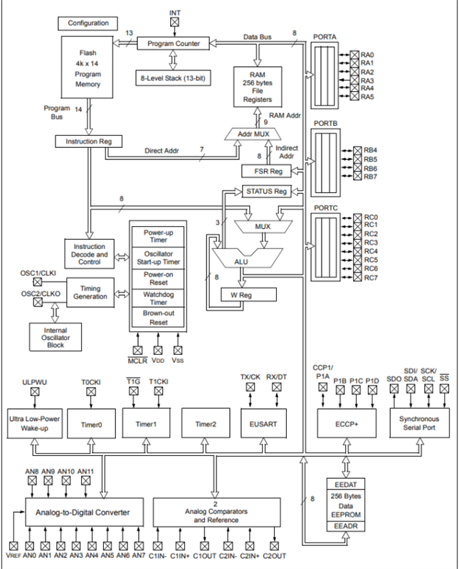 美國微芯PIC16F690-I/SS單片機的技術參數和應用方框圖