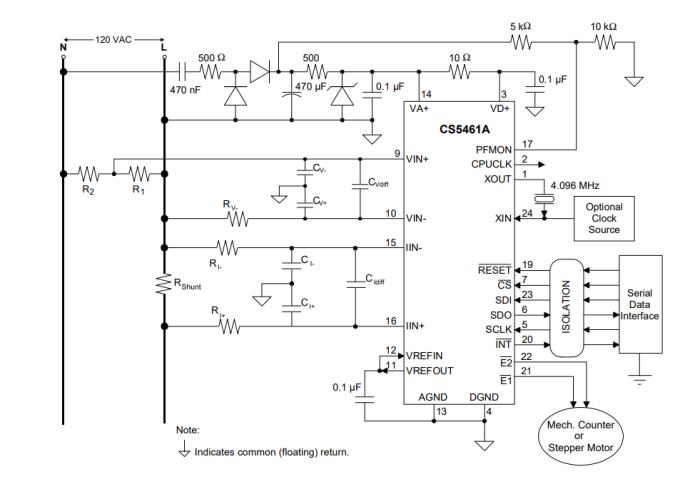 CS5461A-ISZR經(jīng)過(guò)優(yōu)化,可連接分流電阻器或電流互感器進(jìn)行電流測(cè)量,并連接電阻分壓器或電勢(shì)用于電壓測(cè)量的變壓器。