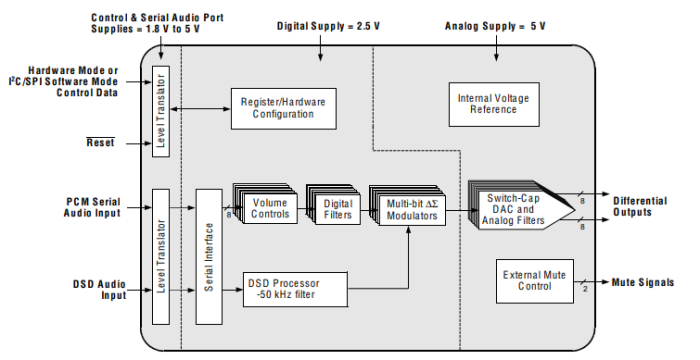 CS4382A以4 kHz至216 kHz的采樣率接收PCM數據、DSD音頻數據,并提供卓越的音質。
