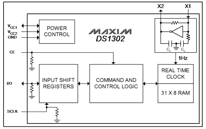 DS1302是DS1202的繼任者。除了DS1202的基本計時功能外,DS1302還具有用于主電源和備用電源的雙電源引腳的附加功能,可編程用于VCC1的涓流充電器和七個額外字節的暫存存儲器。