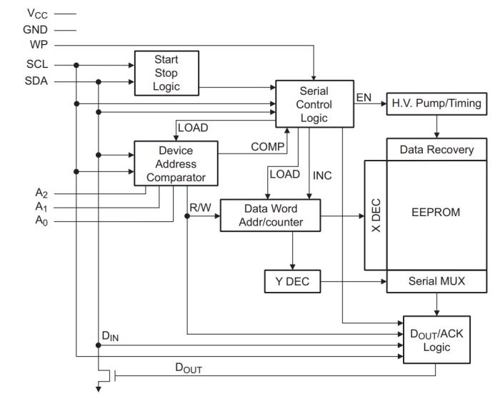 內部組織為128 x 8(1K)或256 x 8(2K)