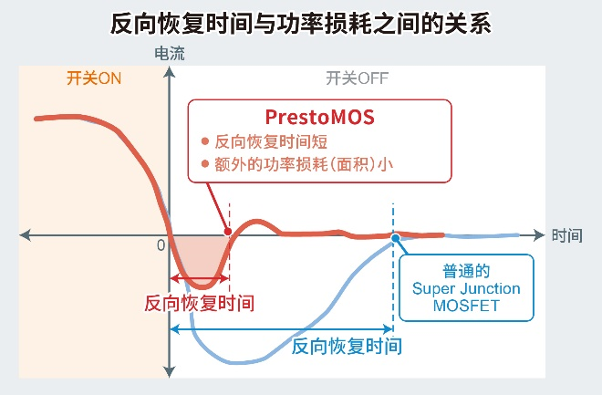 PrestoMOS是ROHM自有的功率MOSFET品牌,該品牌的MOSFET產(chǎn)品不僅保持了Super Junction MOSFET高耐壓和低導(dǎo)通電阻的特點(diǎn),還縮短了內(nèi)置二極管的反向恢復(fù)時(shí)間。因其可降低開關(guān)損耗而越來越多地被用于空調(diào)和冰箱等配備逆變電路的應(yīng)用。