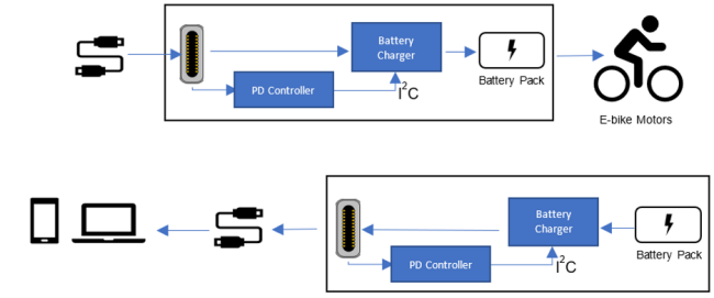電動自行車電池充電系統設計便是一個通過對不同車型使用相同電池充電器 IC 而受益的應用示例,其中涉及一種稱為擴展功率范圍 (EPR) 的全新 USB 電力輸送 (PD) 標準,輸出功率高達 240W,VIN 高達 48V。鑒于更高的 EPR 功率和使用標準 USB Type-C? 適配器的便利性,設計人員正在尋求為電動自行車實現 USB PD EPR 充電,這需要將電池充電器 IC 集成到電動自行車電池包中。