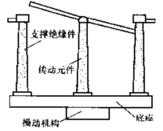 隔離開關都是有開端元件、支持絕緣件、傳動元件、基座及操作機構五個基本部分組成,其方框圖如圖所示。