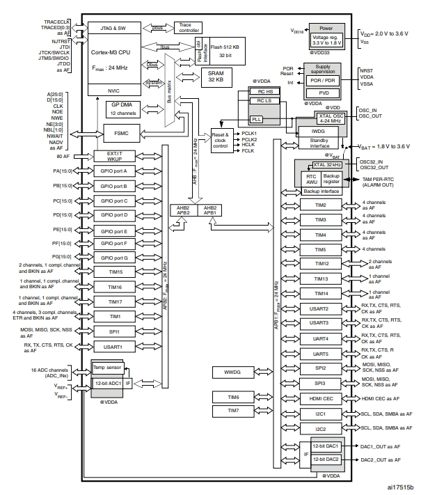 外設:DMA,PDR,POR,PVD,PWM,溫度傳感器,WDT