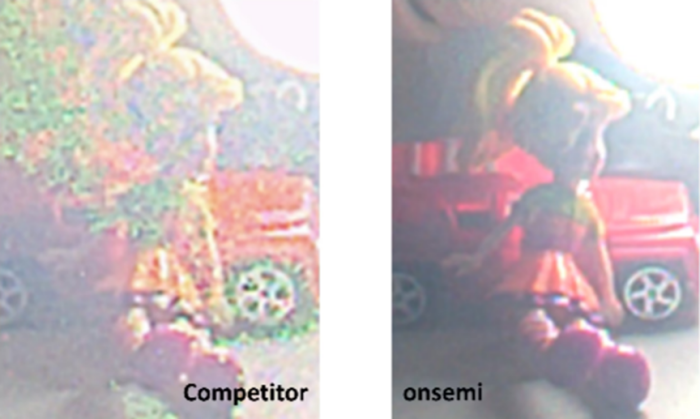 圖 1:競(jìng)爭(zhēng)對(duì)手的傳感器(左側(cè))與安森美 ART0220AT(右側(cè))的對(duì)比。請(qǐng)注意左側(cè)圖中的低光性能下降和出現(xiàn)偽影