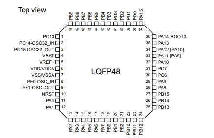 STM32G070CBT6TR提供標準通信接口(兩個I2C、兩個SPI/一個I2S和四個USART)、一個12位ADC(2.5 MSps),最多19個通道、一個低功耗RTC、一個高級控制PWM定時器、五個通用16位定時器、兩個基本定時器、兩臺看門狗定時器和一個SysTick定時器。