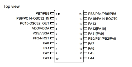 STM32G031F8P6的引腳封裝圖
