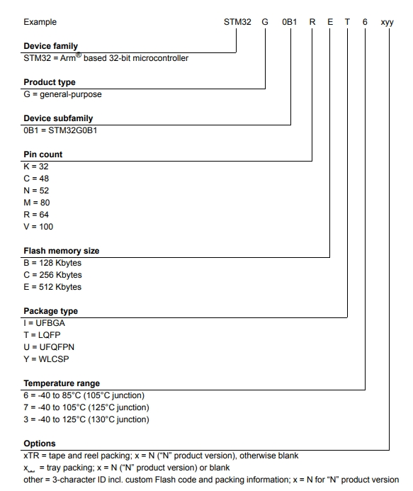 意法半導(dǎo)體STM32G0B1RCT6的型號解釋圖