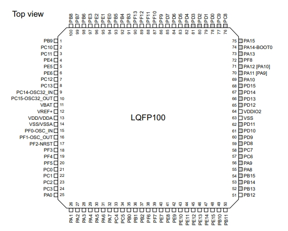 意法半導體STM32G0B1VET6的引腳封裝圖