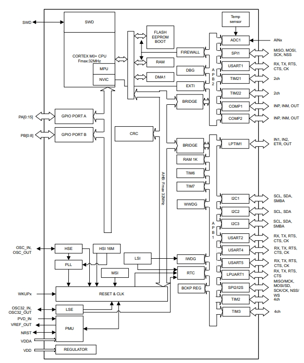 外設(shè):欠壓檢測/復位,DMA,I2S,POR,PWM,WDT
