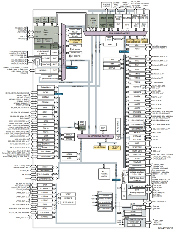 STM32H747AII6的功能方框圖