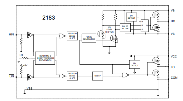 1、高集成度:IR2183SPBF集成了兩個獨立的高/低側驅動器,可同時控制上下兩個MOSFET,適用于控制半橋或全橋拓撲。