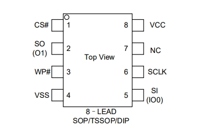 4、標準SPl,雙輸出-標準:SCLK,CS#,SO。WP#-雙輸出:SCLK、CS#,O1。工作包編號;