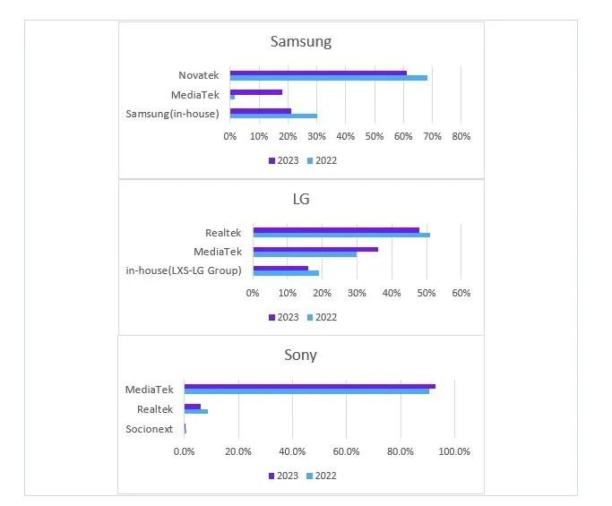 韓系頭部電視品牌將降低其自家(in-house)的電視芯片的趨勢