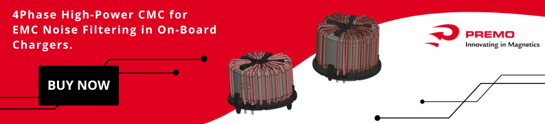 PREMO發布了最新產品4CMCN065R0-16H和4CMCN065R0-32H,這是兩款4相大功率共模扼流圈,專為高達22Kw的電動汽車車載充電器的EMC噪聲過濾而設計。這些汽車級扼流圈體積小(<5.8>98.5%),是尋求充電系統優化的電動汽車制造商的理想解決方案。