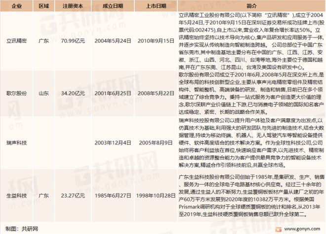 隨著我國(guó)電子元器件市場(chǎng)應(yīng)用范圍的逐漸擴(kuò)大,參與電子元器件行業(yè)的企業(yè)越來(lái)越多,推動(dòng)了我國(guó)電子元器件市場(chǎng)的不斷繁榮,目前我國(guó)電子元器件市場(chǎng)上市企業(yè)主要有立訊精密、歌爾股份、瑞聲科技、生益科技等。