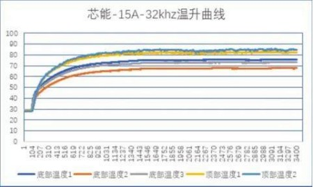 XNC20S12FT 新品SiC智能功率模塊在整機運行實驗中表現優秀,在較高工作載波頻率(32KHz),負載電流為80%的額定電流的工況下溫升表現良好,電流、電壓波形穩定無明顯尖刺干擾,能保證電機的穩定、高效運轉。