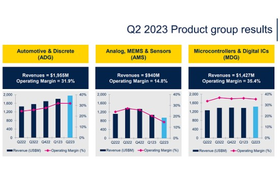 意法半導體召開2023年第二季度財報說明會。數(shù)據(jù)顯示,意法半導體第二季度凈收入43.3億美元,同比增長12.7%。毛利率49%,營業(yè)利潤率26.5%,凈利潤10億美元;上半年凈收入85.7億美元,同比增長16.1%,毛利率49.3%,凈利潤20.5億美元。意法半導體總裁Jean-Marc Chery表示,第二季度凈收入同比增長12.7%,主要得益于汽車和工業(yè)業(yè)務的持續(xù)強勁增長。