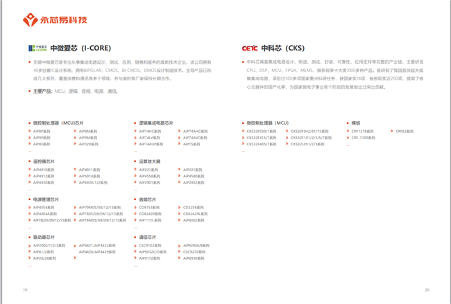 企業主營:電源IC、射頻IC、接口IC、數字信號處理器(DSP)、單片機(MCU)、場效應管(MOSFET)、單管(IGBT)、碳化硅(SIC)、運放、存儲、傳感器、可控硅等